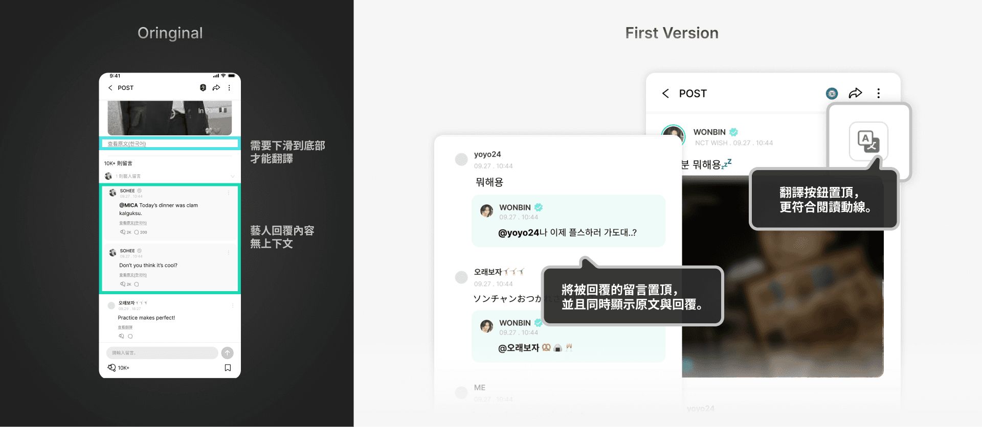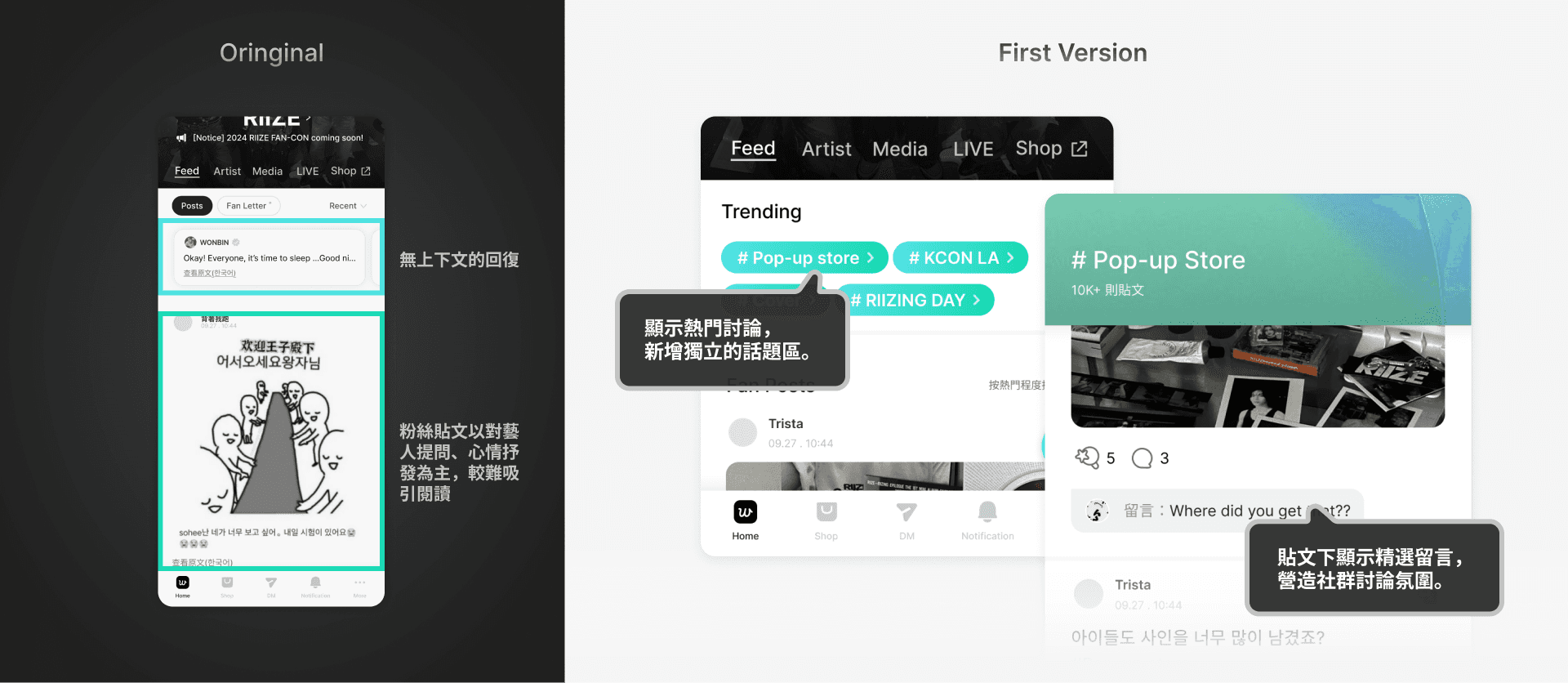 這些都指向weverse在話題內容本身、內容理解和閱讀性上,都有改善空間。